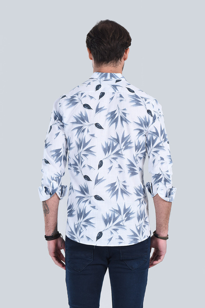 COTTON BASKILI KLASIK UZUNKOL GOMLEK